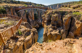 Ce matin vous prenez la route pour le Blyde River Canyon, sur la Panorama Route. La rivière Blyde a creusé des gorges spectaculaires à travers la montagne. Plus de 26 km de falaises recouvertes d’une végétation subtropicale luxuriante plongent dans la rivière 800 m en contrebas faisant de ce canyon le troisième plus grand et le plus vert au monde. Des points de vue aménagés sur les hauteurs offrent des panoramas à couper le souffle, notamment sur les célèbres Three Rondavels, trois pics de quartzite et schiste qui surplombent la rivière à 600 m de hauteur, ressemblant aux maisons africaines traditionnelles. Tous ces sites font partie de la réserve naturelle de Blyde River Canyon, essentiellement accessible à pied. Vous arrivez ensuite à Pilgrim’s Rest, un ancien village de mineurs où vivaient les chercheurs d’or au XIXe siècle. Les maisons d’époque, parfaitement conservées, donnent au lieu l’allure d'une ville-musée. Vous reprenez la route jusqu’à votre lodge situé aux portes du Parc national Kruger.
