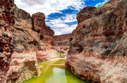 Tout aussi envoûtant par ses couleurs étonnantes, visitez le site de Deadvlei où se dressent au milieu de sa cuvette des arbres comme pétrifiés, puis explorez à pied le canyon de Sesriem, qui atteint par endroits une profondeur de 30 mètres. Le canyon propose une promenade agréable et intéressante vers son extrémité étroite en amont, et vers sa partie élargie en aval.