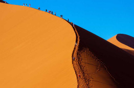En perpétuelle évolution, les formes et les couleurs des dunes changent avec une lumière atteignant son apogée juste après l’aube. Pour en apprécier toute l’immensité, grimpez au sommet d’une dune, la vue est spectaculaire. Avec un peu de chance, vous apercevrez des autruches, des oryx et des gemsboks au milieu du pan.