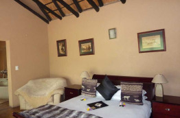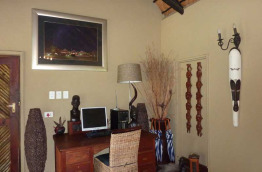 Les parties communes sont largement ouvertes sur le bush, face à la piscine, sur un point d’eau et sur une jolie pelouse où broutent les impalas.