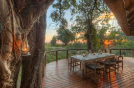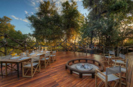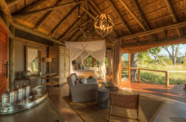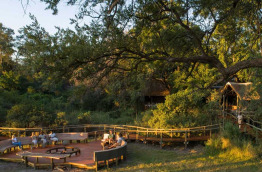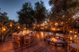 Les parties communes, bar, salon et restaurant, sont particulièrement agréables grâce à leur position surélevée, surplombant les eaux de la lagune de Xakanaxa. En contre-bas, le coin feu, sur une superbe terrasse en bois, est très intime.