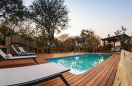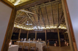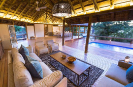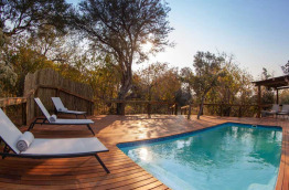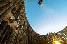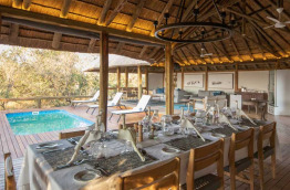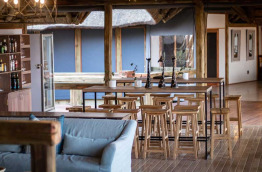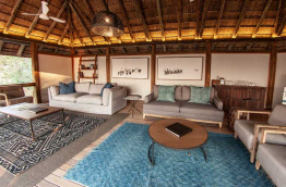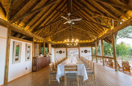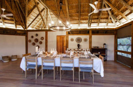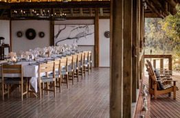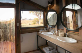 Le camp est construit au bord d'un pan, zone marécageuse en saison des pluies et asséchée le reste du temps. Cette zone ouverte donne une impression d'immensité très agréable. De grands arbres ombragent les tentes. Les parties communes comprennent un vaste salon ouvert, qui se prolonge par un deck qui accueille la piscine. La salle à manger et le bar sont également entièrement ouverts sur l’extérieur. Le mobilier contemporain et le choix des couleurs donne un style résolument moderne.