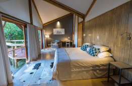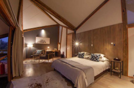 Les 12 tentes sont disposées en demi-cercle face au pan afin que chacun puisse profiter de la vue depuis sa terrasse privée. Ce sont des tentes en semi-dur : le plancher est bois, ainsi que certaines cloisons, alors que d'autres sont en toile. Très vastes, elles ont un style contemporain renforcé par l'harmonie des couleurs : blanc, bleu et bois. Grands lits simples ou doubles, terrasse privative en bois, salle de bain avec double vasque, douches extérieure et intérieure, WC.