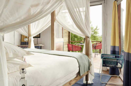 Le camp dispose de six suites de luxe disposées sur des plate-formes élevées dans les arbres avec de larges terrasses en bois qui offrent une vue dégagée sur les eaux permanentes de la rivière et la faune qui s’y trouve. Les suites possèdent des lits à baldaquin entièrement mobiles qui peuvent être tirés sur la terrasse pour dormir sous le ciel étoilé du Botswana. Chaque suite comporte une chambre spacieuse ainsi qu’une salle de bains privée.