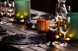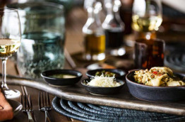 Le dîner est servi à l’assiette, généralement autour de la grande table commune du restaurant mais des tables privées peuvent être organisées sur demande.