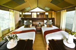 Les 9 tentes sont très confortables mais rustiques. L’intimité est assurée par la végétation entre chaque tente. Grands lits simples avec moustiquaire, terrasse privative en bois face à la lagune, salle de bain avec double vasque, douche extérieure, WC.