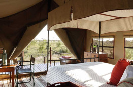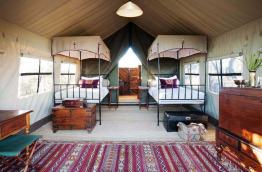 Les 12 tentes traditionnelles de type meru tent sont meublées avec de beaux meubles anciens en bois, 6 twins avec lits simples ou et 4 doubles avec un grand lit, salle de bain attenante avec douche à ciel ouvert.