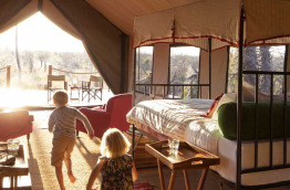Les 2 tentes familiales sont composées de 2 tentes attenantes, 1 double et 1 twin, partageant une salle de bain.