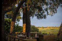 Les parties communes, installées à l'ombre de grands ébéniers, comprennent le restaurant, un bar, une bibliothèque et de grands salons très confortables, sans oublier le traditionnel feu de camp face à la plaine. Les espaces sont vastes, ouverts sur l'extérieur et permettent de s’isoler pour ceux qui le souhaitent.