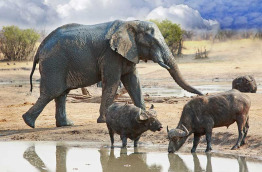 Deux jours complets sont consacrés à l’exploration du Parc national de Hwange tant les animaux sont nombreux. Vivez des moments inoubliables au milieu des éléphants et des troupeaux d’antilopes ! Ce parc est l’un des plus beaux refuges d’Afrique avec près de 60 points d’eau qui furent créés, alimentés par les eaux souterraines. D’une manière générale, le parc est extrêmement aride et les animaux ne survivent en saison sèche que grâce aux points d’eau artificiels autour desquels ils se regroupent. Il abrite de nombreux troupeaux d’éléphants, de buffles, de zèbres, et possède une grande concentration de girafes. C’est l’un des rares parcs d’Afrique où vous avez de grandes chances de voir les deux sortes d’hippotragues (noir et rouan) ainsi que des lycaons. De nombreux prédateurs y sont également présents, ainsi que beaucoup d’espèces d’oiseaux sauvages. Il est possible d’y voir des rhinocéros mais ils sont timides et assez peu nombreux.