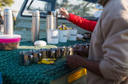 Nous vous recommandons des vêtements de couleur neutre, un gilet pour les matinées et les soirées, un chapeau et des lunettes de soleil. Pensez à emporter une gourde que vous pourrez remplir lors du safari.