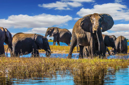 Ce matin vous prenez la route pour le Parc national de Chobe, deuxième plus grand parc national du Botswana, bordé au Nord par la majestueuse rivière Chobe qui lui offre une nature sauvage et une faune abondante. Le parc est célèbre pour sa forte concentration d’éléphants, plus de 100 000 spécimens y sont recensés, soit un tiers de la population d’Afrique. Vous explorez les différents écosystèmes du parc national le plus diversifié du Botswana, à travers les plaines verdoyantes, les forêts denses et les prairies vallonnées abritant plus de 450 espèces de mammifères notamment des familles de lions, zèbres, guépards ou impalas. Les marais, les plaines inondables et les lagunes du parc sont le terrain de jeu des éléphants, des hippopotames et des crocodiles. Le parc est idéal pour l’observation des oiseaux, et en compte environ 440 espèces. Cette incroyable diversité fait de Chobe l’une des dernières véritables zones sauvages au monde.