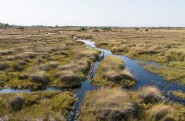 Transfert à l'aéroport et vol vers votre nouveau camp situé sur une île au Nord du delta, sur l’un de ses canaux permanents. Le vaste réseau de chenaux, de marécages permanents, de prairies inondées et plaines d’inondation en saison sèche rend le delta unique, ce qui lui a valu un classement au Patrimoine mondial de l’UNESCO. La particularité de l’inondation du delta est de commencer… quand la saison des pluies est terminée ! Il faut en effet plusieurs mois pour que les eaux de l’Okavango arrivent dans le delta et recouvrent la zone. La faune et la flore vivent au rythme des crues et des pluies annuelles. La végétation, abondante et verdoyante tout au long de l’année, attire une faune riche et diversifiée, les herbivores sont nombreux, notamment les impalas, les gnous, les buffles et différentes sortes de cobes, ainsi qu’une myriade d’oiseaux qui feront le bonheur des amateurs. C’est également l’occasion d’observer de grands mammifères tels que le guépard, les rhinocéros blanc et noir, le lycaon et le lion.
