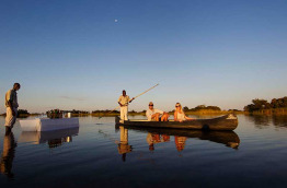 Vous avez toute la journée pour profiter du magnifique delta de l’Okavango grâce aux 2 activités programmées. Votre camp vous offre la possibilité d’explorer les eaux du delta à bord d’un bateau à moteur confortable, ou de façon traditionnelle avec un mokoro, la pirogue locale. Pour une expérience au plus près de la nature, des balades à pied dans le bush sont effectuées avec des guides spécialisés et offrent l’opportunité de suivre les traces des grands mammifères. C’est aussi une belle occasion d’observer les oiseaux aquatiques qui se nourrissent dans les marais. Votre camp étant situé dans une zone du delta inondée, les safaris en véhicules 4x4 ne sont pas possibles. Entre 2 activités, prélassez-vous au bord de la piscine du lodge, et admirez le sublime paysage qui s’étend devant vous.