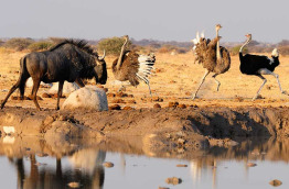 La découverte du delta est une étape incontournable lors d’un voyage au Botswana. Cet immense écosystème est reconnu principalement pour ses paysages magiques, la variété des activités et l’ambiance très particulière qui y règne. L’Okavango est un delta intérieur qui ne débouche pas sur la mer mais se perd dans les sables du Kalahari. Son vaste réseau de chenaux, de marécages permanents, de prairies inondées et plaines d’inondation en saison sèche le rend unique, ce qui lui a valu un classement au Patrimoine mondial de l’UNESCO. La particularité de l’inondation du delta est de commencer… quand la saison des pluies est terminée ! Il faut en effet plusieurs mois pour que les eaux de l’Okavango arrivent dans le delta et recouvrent la zone. La faune et la flore vivent au rythme des crues et des pluies annuelles. La végétation, abondante et verdoyante tout au long de l’année, attire une faune riche et diversifiée. Les herbivores sont nombreux, notamment les impalas, les gnous, les buffles et différentes sortes de cobes, ainsi qu’une myriade d’oiseaux qui feront le bonheur des amateurs. C’est également l’occasion d’observer de grands mammifères tels que le guépard, le rhinocéros blanc et le rhinocéros noir, le lycaon et le lion.