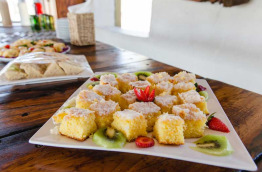 Les repas sont servis sous forme de buffets dans la salle à manger ouverte vers la rivière en contrebas. La nourriture y est excellente et saine, avec des légumes ultra-frais provenant du potager du lodge. .
