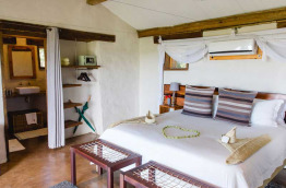 Si extérieurement les chambres ressemblent à des cases africaines, elles offrent un excellent niveau de confort. 10 chambres sont dans des chalets indépendants, tandis que 2 d'entre elles sont communicantes, formant une family chalet.