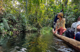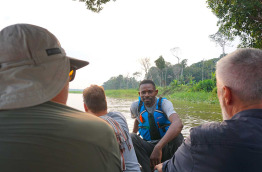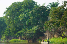 Vous rejoignez en bateau à moteur la rivière Ndoki, connue pour ses eaux noires bordées par une végétation dense, et ses berges abritant plusieurs espèces de grands oiseaux venant chasser ou nidifier. Visite du monument de guerre à Mbiru, lieu de bataille entre soldats français et allemands pendant la première guerre mondiale. Vous partez ensuite à la découverte de la forêt primaire de Mbiru, avant de rejoindre le navire en fin de journée.