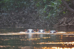 Aujourd’hui, vous naviguez jusqu’à l’estuaire de la rivière Léfini et partez à la rencontre des hippopotames qui y vivent. À bord d’un bateau à moteur, observez de près ces mammifères impressionnants se réunissant en groupes pouvant aller de 2 à 150 individus.