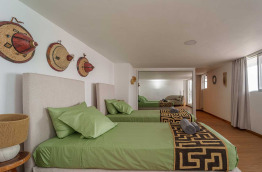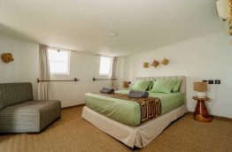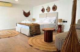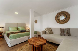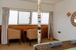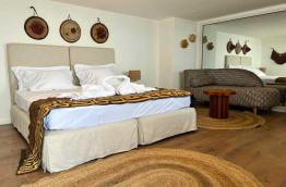Les 6 Suites Deluxe de 18 m2 bénéficient de 2 fenêtres, d’un fauteuil, d’un bureau, d’une chaise et de 2 tables de chevet.