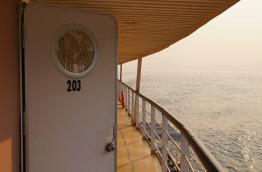 Enfin, le pont d’observation accueille les 2 Suites de l’Armateur de 35 m2 avec 3 fenêtres, un fauteuil, un bureau, un canapé, une chaise, 2 tables de chevet et un balcon privé de 9 m2.