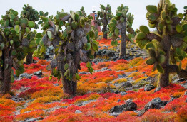 D’abord, après environ 2 h 00 de navigation, vous visiterez l'île de Santa Fe, une péninsule rocheuse couverte du fameux arbre Palo Santo et de cactus géants Opuntia de plus de 6 m de hauteur.