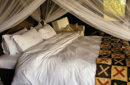 Les 24 tentes-suites, très vastes, sont construites sur un plancher en bois surélevé, prolongé par une terrasse privative, et disposent de véritables lits simples ou double avec moustiquaire à baldaquin, salle de bain avec lavabo, toilettes, baignoire et douche, coin bureau. Le toit de chaume assure une excellente isolation thermique.