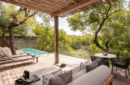 Chaque villa est pourvue d’une ravissante terrasse avec une petite piscine privative et une douche extérieure. Elles offrent toutes une vue plaisante sur le bush et la Klaserie River.