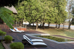 Les 5 bungalows sont disséminés le long de la rivière, loin l'un de l'autre ce qui assure une intimité parfaite. Grande chambre avec lit king size et petit lit de repos, et superbe salle de bain avec douche et baignoire encastrée. La chambre et la salle de bain s'ouvrent largement sur une terrasse privée face à la rivière grâce à des pans de mur repliables.