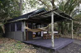 Les 4 tentes sont disséminées sous les arbres, chacune tournée vers la plaine et s'ouvrant par de larges portes coulissantes. Chaque tente dispose de 2 grands lits avec moustiquaire et d'une salle de bain à l'arrière de la tente, avec toilettes et douche chaude. La salle de bain est à ciel ouvert.
