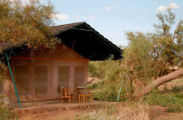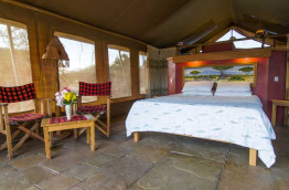 Les 60 tentes sont très vastes et offrent un confort appréciable grâce à leur structure en semi-dur : plancher et terrasse en dur, et un toit au-dessus de la tente qui assure une bonne isolation thermique. À l’intérieur vous trouverez un ou deux lits, un coin salon, une salle de bains avec douche, ventilateur et coffre-fort.