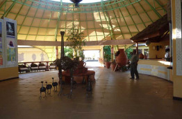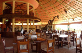Les repas sont servis sous forme de buffet ou de menu selon le nombre de clients, dans la vaste salle à manger largement ouverte sur le bush, face au trou d’eau.