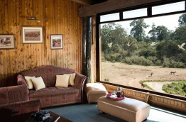Dans le parc national du Mont Kenya mais facilement accessible, face au point d'eau et à la forêt environnante.