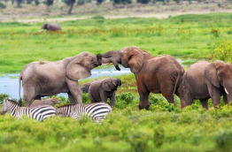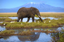 Cette journée de safari est entièrement consacrée au Parc national d'Amboseli avec le Kilimandjaro en toile de fond. Ce parc tient son nom du lac Amboseli, la plupart du temps asséché. Ce paysage contraste avec la végétation verdoyante des zones marécageuses, où l'on trouve des palmiers sauvages, des bois d'acacias tortilis et assez d'herbe pour attirer les gnous, les zèbres et les gazelles pour les principaux herbivores. Les buffles et les hippopotames ne manquent pas non plus dans les marais ou les chenaux. Le parc se prête excellemment à l'observation des oiseaux, en particulier à proximité des lacs et des marais. Il est également connu pour être le meilleur endroit d'Afrique pour s'approcher des éléphants en liberté. Les prédateurs se font plus rares. Amboseli est, sans surprise, l'une des réserves les plus populaires du Kenya.