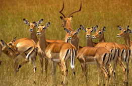 Le Masaï Mara est l’une des plus belles réserves d’Afrique. Constituée en grande partie de collines à perte de vue, recouvertes de savane verdoyante ou dorée selon les saisons parsemée d’acacias parasols, la réserve du Masai Mara offre des paysages somptueux et une densité impressionnante d’animaux. Inscrit au Patrimoine mondial de l’Humanité, ce parc est le théâtre de la plus grande migration animale encore existante. Cette importante migration rassemble plus d’1 million de gnous et plusieurs centaines de milliers de zèbres et antilopes, ainsi qu’un très grand nombre de prédateurs qui se rassemblent dans le Masai Mara pendant la saison sèche. Mais l'observation ne s'arrête pas là, les grandes troupes de lions, les éléphants, les girafes des prairies, les gazelles sont quelques exemples de la faune incroyable visible au Masai Mara tout au long de l'année. Mis à part les véhicules de safaris traditionnels, le Masai Mara est aussi célèbre pour ses survols en ballon ou ses safaris à cheval, qui sont des moyens fabuleux de découvrir ce paradis terrestre.