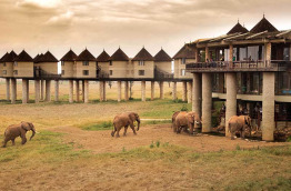 Installation au Sarova Salt Lick, avec vue sur le point d’eau où viennent s’abreuver de nombreux animaux.