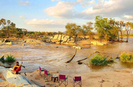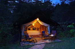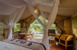 Nuit au Sweetwaters Serena Camp bâti au bord d'un point d'eau, au cœur de la concession privée. Les tentes, bien décorées, offrent une agréable ambiance de camp de brousse.