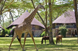 Nuit au Lake Naivasha Sopa Lodge qui se situe au cœur de 60 hectares de plaines d'acacias. De nombreuses girafes se baladent près du lodge, et il n'est pas rare d'apercevoir des hippopotames à la tombée de la nuit.