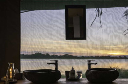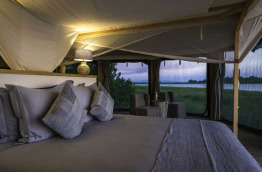 Les 4 tentes, dont une familiale avec une petite tente adjacente pour les enfants, sont disséminées le long de la rivière, très espacées pour assurer une intimité parfaite. Dans la journée, tous les pans de murs sont relevés assurant une ventilation très agréable en saison chaude et une proximité avec la brousse environnante très plaisante. Le soir, les pans sont déroulés et l’on peut au choix laisser uniquement la moustiquaire, ou tirer des rideaux opaques pour une ambiance plus cosy.