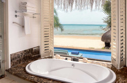22 Beach Villas d’environ 58 m2 sont équipées d’un lit king-size ou de deux lits simples, et peuvent accueillir jusqu’à 2 adultes et 1 enfant. Elles comprennent un coin salon, une salle de bains avec baignoire, douche intérieure et douche extérieure, ainsi qu’une terrasse privative avec accès direct à la plage.