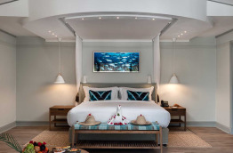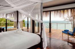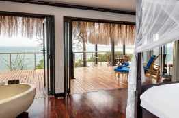12 Two Bedroom Sea View Pool Villas offrent un espace d’environ 250 m2 et une vue à couper le souffle. Ces villas sont situées sur les hauteurs et n’ont par conséquent pas d’accès direct à la plage. Idéales pour les familles, elles sont composées de deux chambres reliées par un salon central. On y retrouve aussi une salle à manger, une kitchenette, un bar, et une grande terrasse équipée d’une table à manger extérieure et d’une piscine privative.