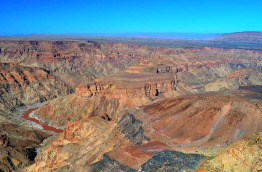 Puis à une dizaine de kilomètres, visitez Kolmanskop, un village fantôme au cœur du désert construit pour les chercheurs de diamants. Au début du XXème siècle, un riche gisement de diamants est découvert dans la région, Kolmanskop prospère jusqu’en 1930 puis connaît l’abandon total en 1954. Aujourd’hui, vous découvrez un village abandonné où les bâtiments, l’ancien hôpital et les maisons coloniales, ouverts aux quatre vents sont envahis par le sable du désert. Après ce détour jusqu’à l’océan, votre voyage se poursuit au cœur du deuxième plus grand canyon du monde, le Fish River Canyon. Un gigantesque ravin de 161 km de long sur 27 km de large et d’une profondeur de 550 mètres.