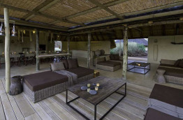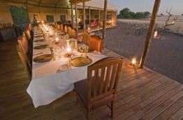 Une grande tente commune en forme de L, largement ouverte sur l'extérieur et située sur le sommet d'une colline rocheuse, accueille le restaurant et un coin bar avec de confortables fauteuils. Le soir, un feu de camp est allumé devant le bar.