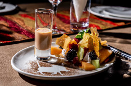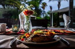 Très apprécié des clients, un menu unique de 3 plats est proposé chaque soir entre 19 h 00 et 21 h 30, sur réservation. La cuisine, inspirée des spécialités africaines et françaises, met à l’honneur les viandes, légumes et fruits locaux.