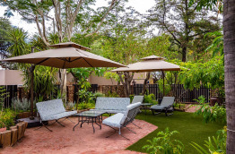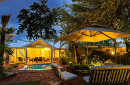 Londiningi Guesthouse dispose d’une piscine au cœur de son jardin, entourée de chaises longues et de parasols.