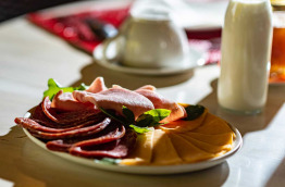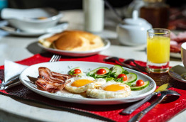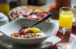 Préparé sur demande, un déjeuner peut être servi entre 12 h 00 et 15 h 00. Il est également possible de commander un pique-nique.