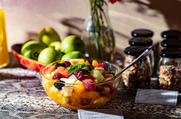 Un petit-déjeuner buffet est proposé chaque matin entre 7 h 00 et 9 h 00. Dégustez une sélection de plats cuisinés et de viennoiseries, à savourer dans la salle à manger ou en terrasse aux beaux jours.