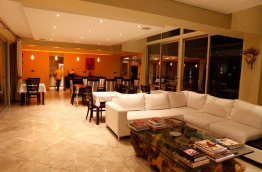 Les pièces à vivre, largement vitrées, sont ouvertes sur la piscine et le jardin, superbement décorées d’objets d’art choisis par le propriétaire.