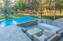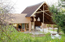 Le lodge est construit sur un affleurement rocheux, au coeur d'un parc verdoyant planté de grands arbres. Les parties communes sont vastes et bien ouvertes sur l'extérieur.