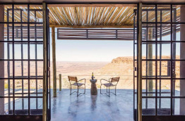 Les parties communes sont résolument modernes et dépouillées afin que l'accent soit mis sur les immenses baies vitrées permettant de profiter pleinement de la vue grandiose sur le canyon. Le bâtiment principal abrite un bar, un salon avec cheminée, un coin thé et café et une salle à manger.